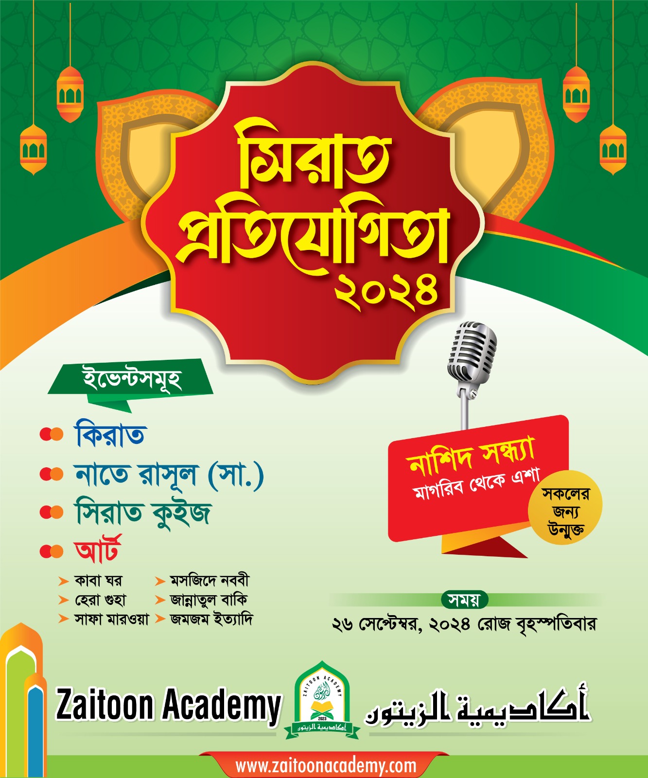 যাইতুন একাডেমির উদ্যোগে আয়োজিত হচ্ছে সিরাত প্রতিযোগিতা-২০২৪। যাইতুন একাড.. Details