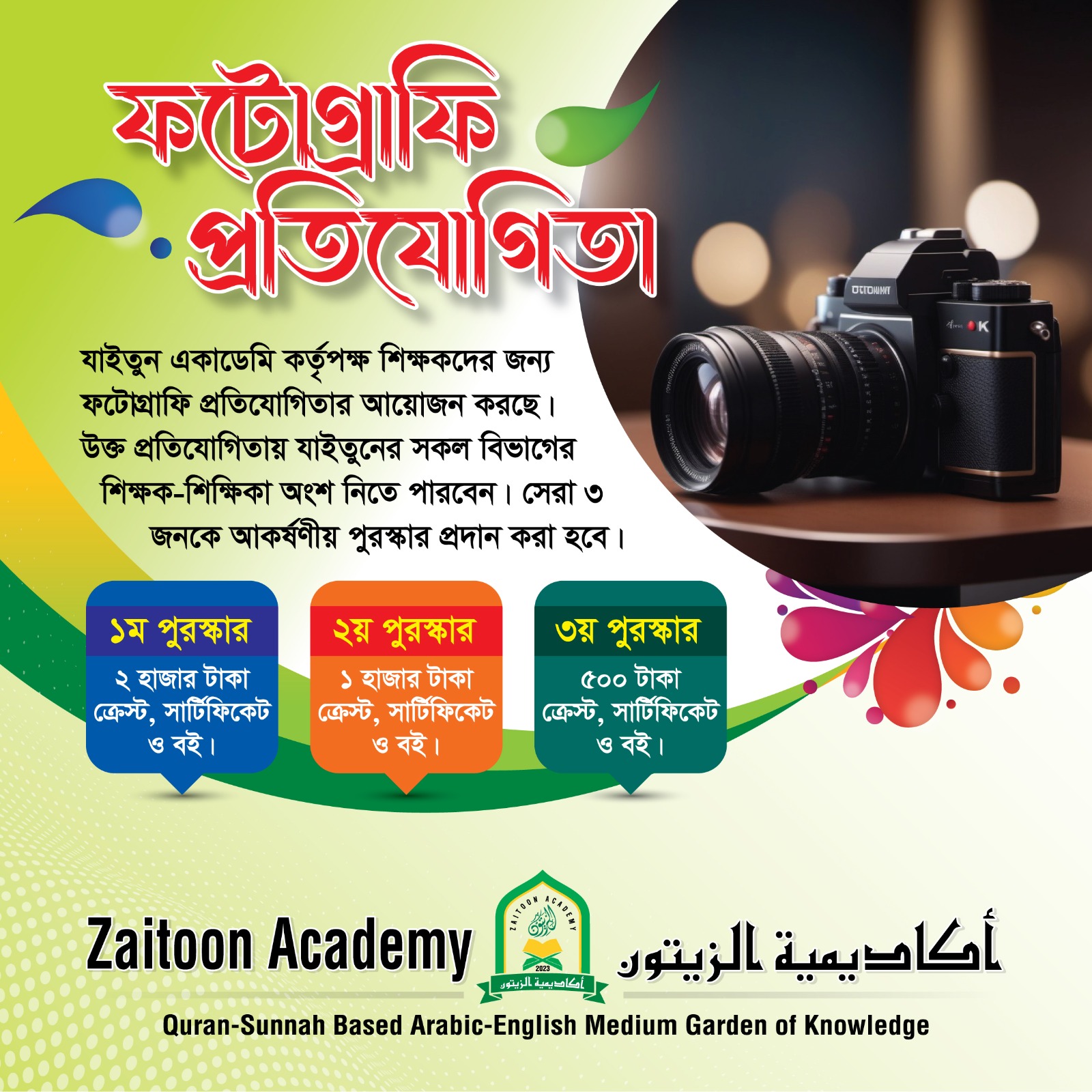 ফটোগ্রাফি প্রতিযোগিতা\r\nযাইতুন একাডেমি কর্তৃপক্ষ শিক্ষকদের জন্য ফটোগ্রাফ.. Details
