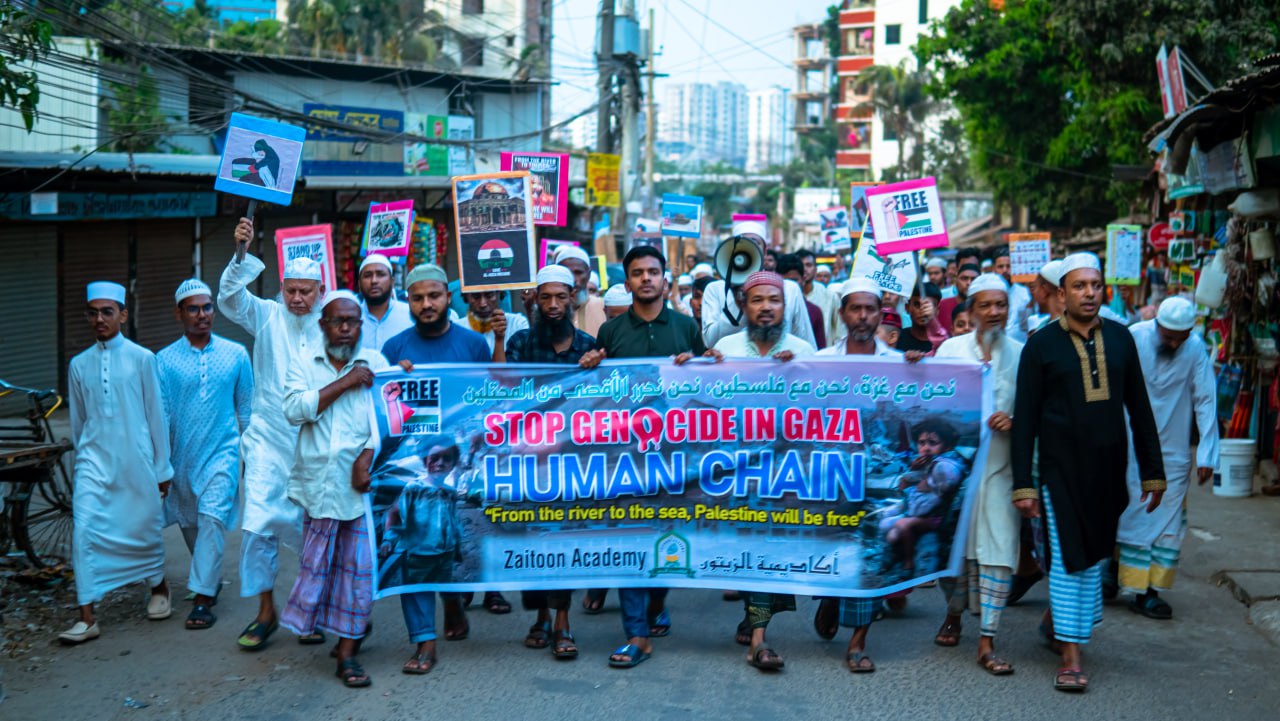 ফিলিস্তিনে ইসরাইলের বর্বরতার বিরুদ্ধে মানববন্ধনের আয়োজন করছে যাইতুন একাড.. Details
