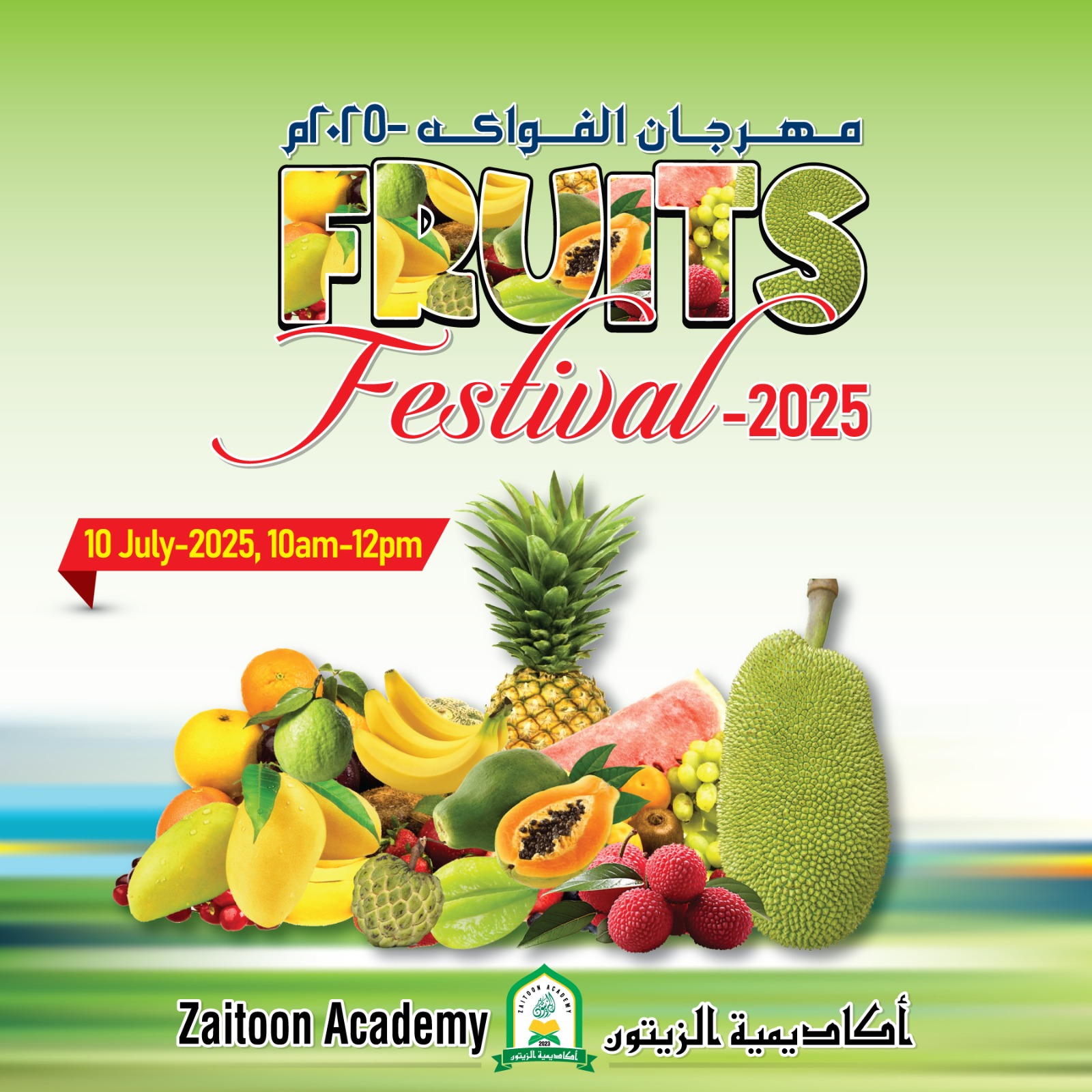 🍎🍌 Zaitoon Academy Fruits Festival 2025 🍇🍉 📅 Date: 10 July 2025 📍 Zaitoon Academy Campus We are excited to announce our Fruits Festival at Zaitoon Academy! 🎉 Every class will .. Details