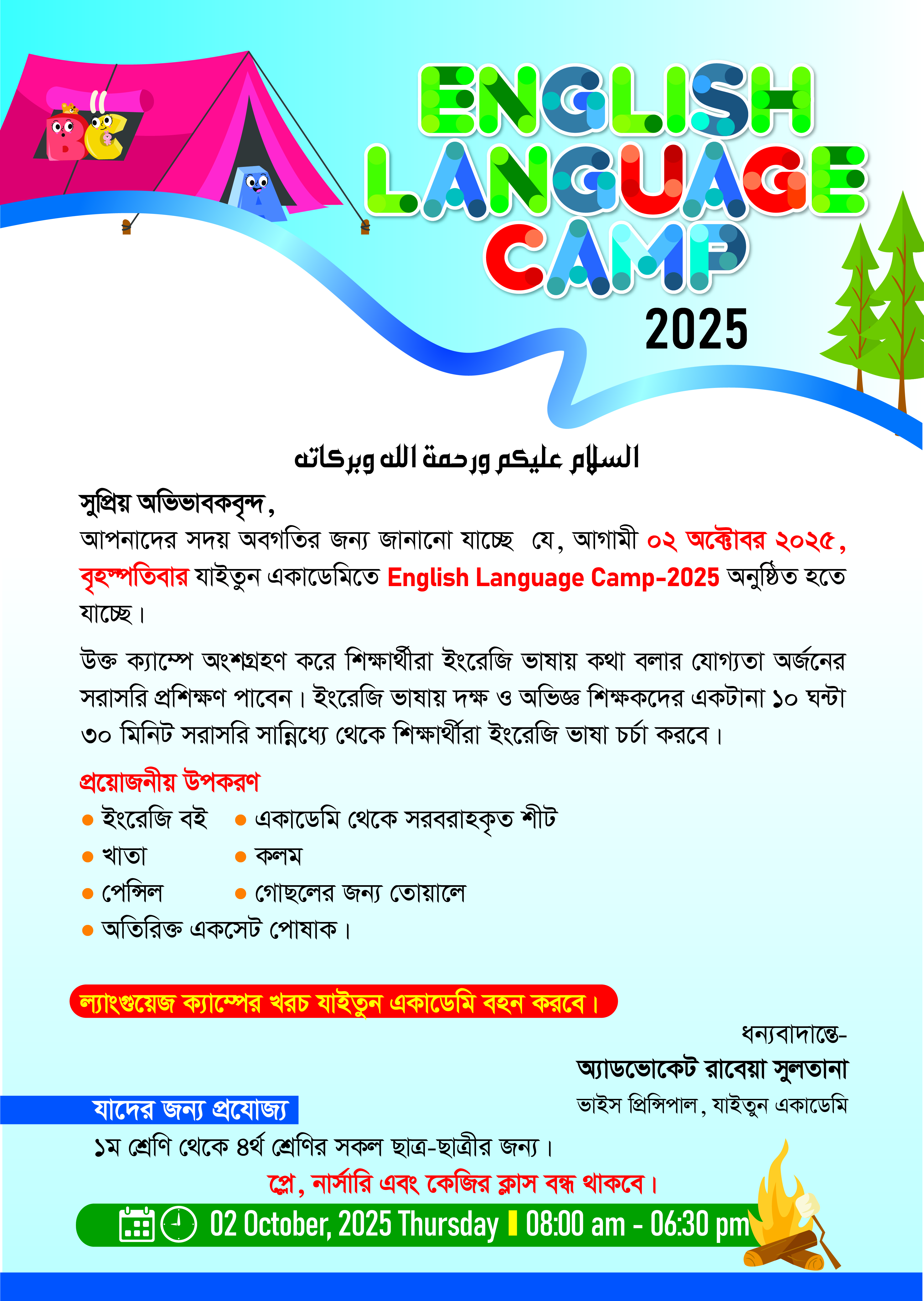 English Language Camp - 2025 Recent Notice অভিভাবক ও বিভাগীয় প্রধানদের সাক্ষাৎকার – ২০২৬ ১ম অভিভাবক-শিক্ষক বৈঠক (PTM) ২০২৬ - এর সময়সূচী | ০৭ মার্চ ২০২৬, শনিবার পবিত্র লাইলাতুল ক্বদর ও ঈদুল ফিতর - ২০২৬ উপলক্ষে ছুটির বিজ্ঞপ্তি List of Winners - Ahkamus Siam Quiz Competition-2026 স্প্রিং সেমিস্টার - ২০২৬ এর মিড টার্ম পরীক্ষা সংক্রান্ত বিশেষ বিজ্ঞপ্তি পবিত্র মাহে রমাদান উপলক্ষে একাডেমির সময়সূচী সংক্রান্ত বিশেষ বিজ্ঞপ্তি আন্তর্জাতিক মাতৃভাষা দিবস - ২০২৬ উদযাপন উপলক্ষে বিশেষ বিজ্ঞপ্তি | ২১শে ফেব্রুয়ারী ২০২৬ পবিত্র রমাদানের ১ম দিন উপলক্ষে ছুটির বিজ্ঞপ্তি ত্রয়োদশ জাতীয় সংসদ নির্বাচন উপলক্ষে ছুটির বিজ্ঞপ্তি RAMADAN COMPETITION & ISLAMIC ROLE PLAY (রমাদান কুইজ প্রতিযোগিতা ও ইসলামিক রোল প্লে) - 2026 পবিত্র মাহে রমাদান উপলক্ষে খাদ্য ও ইফতার বিতরণ কর্মসূচি - ২০২৬ পবিত্র শবে বরাত উপলক্ষে ছুটির বিজ্ঞপ্তি - ০৫ ফেব্রুয়ারি ২০২৬ গাড়ি সার্ভিস বন্ধ থাকা সম্পর্কে জরুরী নোটিশ Vacation Notice for 18 January 2026 Notice Regarding Annual Study Tour for the Students of Classes Two, Three, Four, Five, Six, Mutafarriqa - All Sections & Tahfeez - Female Section - 2026