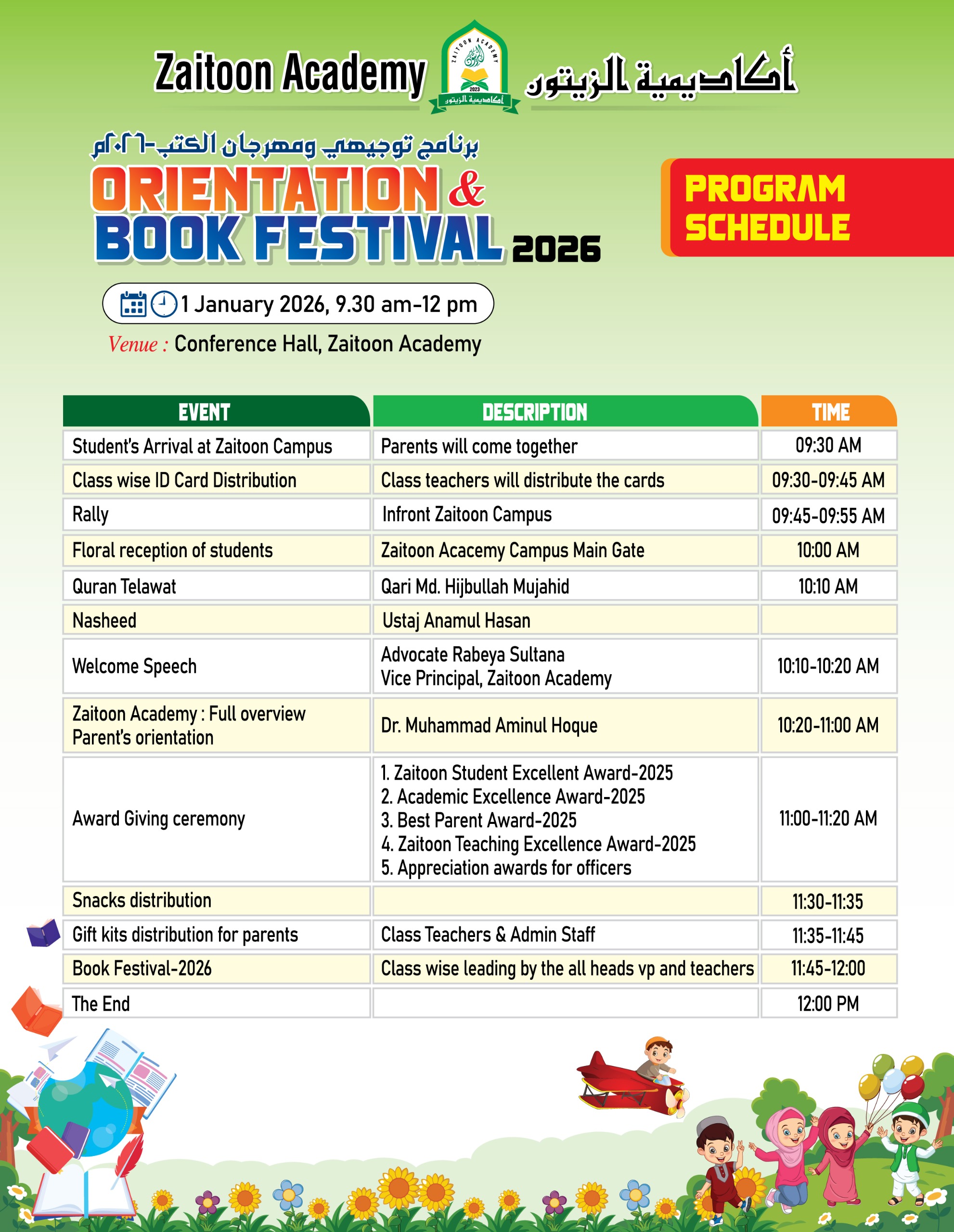 Schedule for Orientation & Book Festival 2026 Recent Notice অভিভাবক ও বিভাগীয় প্রধানদের সাক্ষাৎকার – ২০২৬ ১ম অভিভাবক-শিক্ষক বৈঠক (PTM) ২০২৬ - এর সময়সূচী | ০৭ মার্চ ২০২৬, শনিবার পবিত্র লাইলাতুল ক্বদর ও ঈদুল ফিতর - ২০২৬ উপলক্ষে ছুটির বিজ্ঞপ্তি List of Winners - Ahkamus Siam Quiz Competition-2026 স্প্রিং সেমিস্টার - ২০২৬ এর মিড টার্ম পরীক্ষা সংক্রান্ত বিশেষ বিজ্ঞপ্তি পবিত্র মাহে রমাদান উপলক্ষে একাডেমির সময়সূচী সংক্রান্ত বিশেষ বিজ্ঞপ্তি আন্তর্জাতিক মাতৃভাষা দিবস - ২০২৬ উদযাপন উপলক্ষে বিশেষ বিজ্ঞপ্তি | ২১শে ফেব্রুয়ারী ২০২৬ পবিত্র রমাদানের ১ম দিন উপলক্ষে ছুটির বিজ্ঞপ্তি ত্রয়োদশ জাতীয় সংসদ নির্বাচন উপলক্ষে ছুটির বিজ্ঞপ্তি RAMADAN COMPETITION & ISLAMIC ROLE PLAY (রমাদান কুইজ প্রতিযোগিতা ও ইসলামিক রোল প্লে) - 2026 পবিত্র মাহে রমাদান উপলক্ষে খাদ্য ও ইফতার বিতরণ কর্মসূচি - ২০২৬ পবিত্র শবে বরাত উপলক্ষে ছুটির বিজ্ঞপ্তি - ০৫ ফেব্রুয়ারি ২০২৬ গাড়ি সার্ভিস বন্ধ থাকা সম্পর্কে জরুরী নোটিশ Vacation Notice for 18 January 2026 Notice Regarding Annual Study Tour for the Students of Classes Two, Three, Four, Five, Six, Mutafarriqa - All Sections & Tahfeez - Female Section - 2026